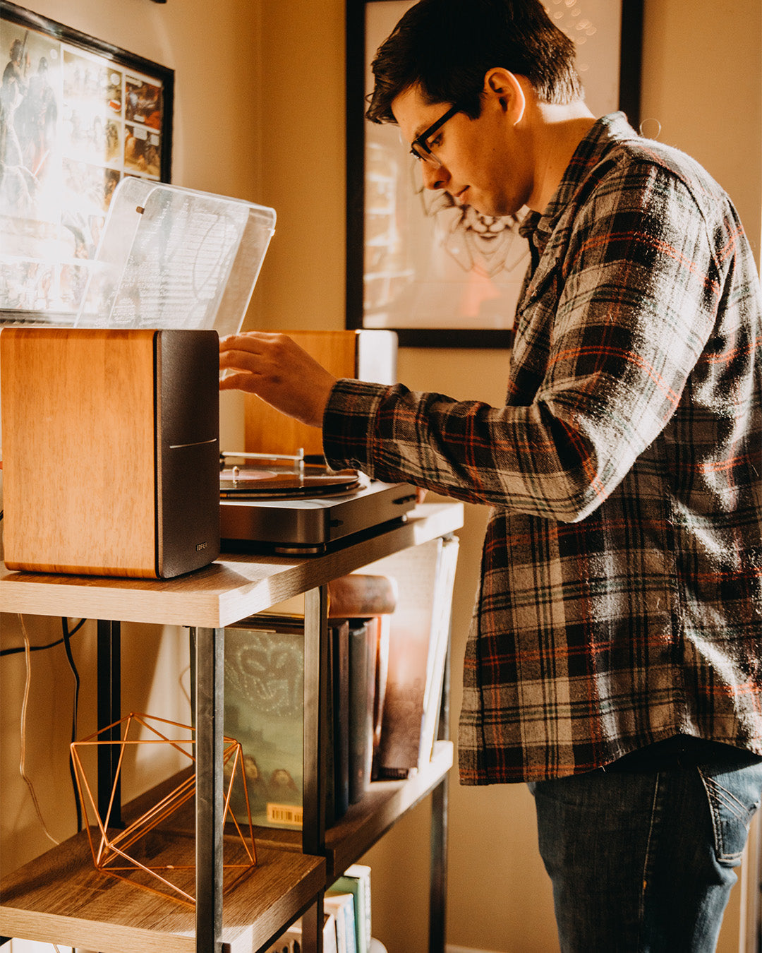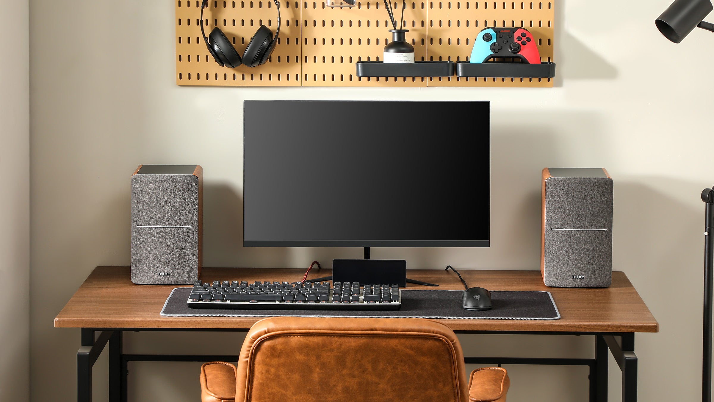 Placez les enceintes sur une surface solide et stable, parallèle à la hauteur des oreilles de l'auditeur, et la distance entre le trou bass-reflex et le mur doit être d'au moins 20 à 50 cm. Pour un son et un équilibre optimaux, l'emplacement idéal pour l'auditeur doit se situer sur l'axe du triangle équilatéral formé par les enceintes gauche et droite. Vous pouvez également ajuster légèrement l'angle de l'enceinte pour obtenir un effet stéréo optimal.