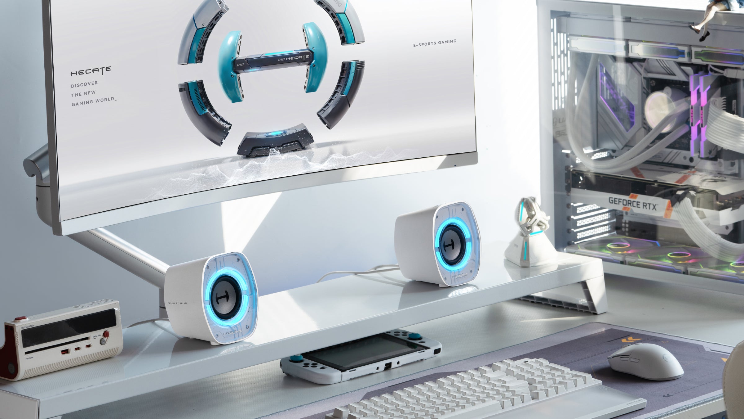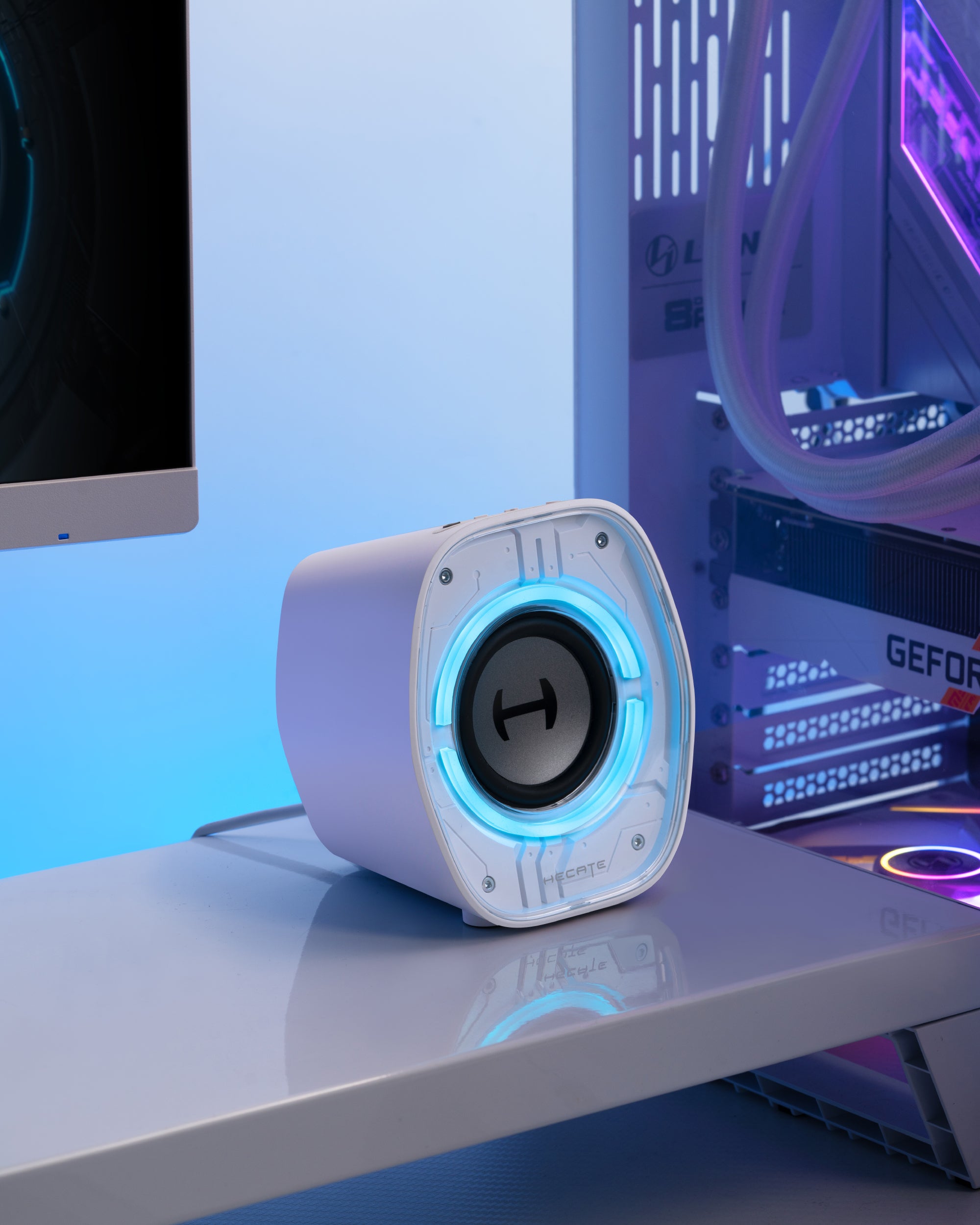Its mech-cyber design blends sharp edges with playful charm—eye-catching on camera, yet compact enough to save space without sacrificing sound.